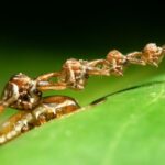 この世の中には、説明できない不思議なことが数多くあります。昆虫の世界でもそれは同様で、頭をいくつもくっつけた奇妙な虫が存在します。今日は、常識では考えられないそんな虫をご紹介します。冒頭の写真は、カメノコハムシの一種(甲虫目:ハムシ科:ドゲハムシ亜科:カメノコハムシ族)の幼虫を横から見たところです。葉っぱにくっついている部分がこの虫の本体で、そこから長い尾のようなものが、エビ反り状態に伸びています。