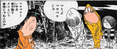 「ペケペケ」とは、水木しげるの出兵(しゅっぺい)したニューブリテン島のトライ族の言葉で、「大便」を意味します。