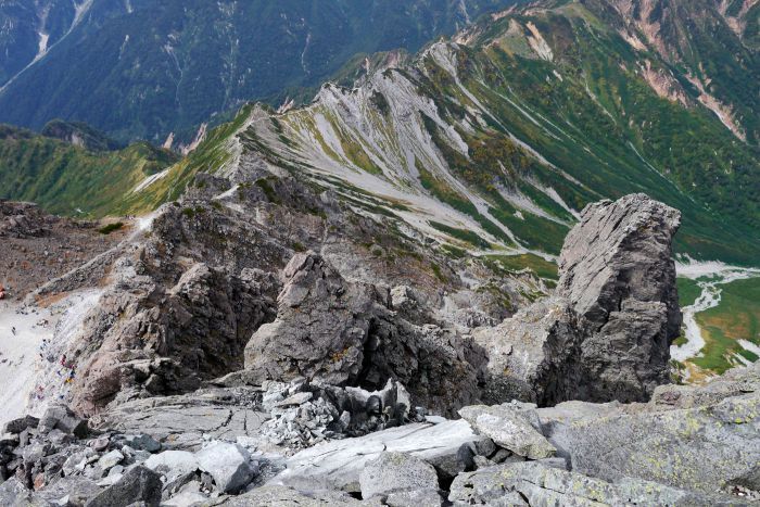 日本の北アルプスのひとつである槍ヶ岳(やりがたけ)の北側にある岩場。